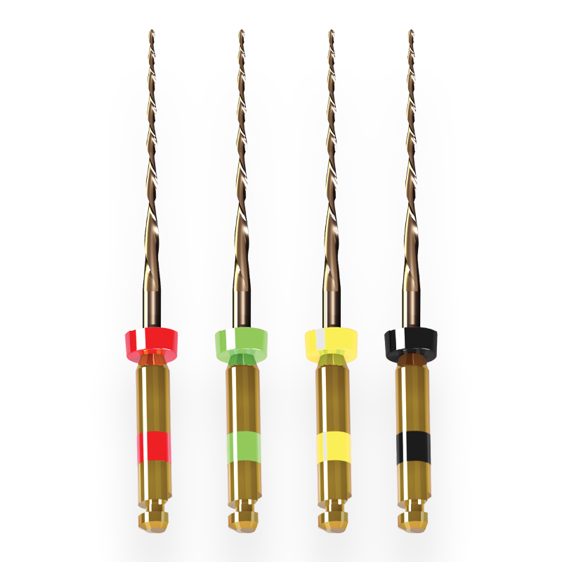 فایل های روتاری نیکل تیتانیوم: این فایل ها از 56٪ نیکل و 44٪ تیتانیوم تشکیل شده اند و دارای انعطاف پذیری بالا، مقاومت در برابر خوردگی، قابلیت ارتجاعی بالا و حافظه حرارتی هستند.