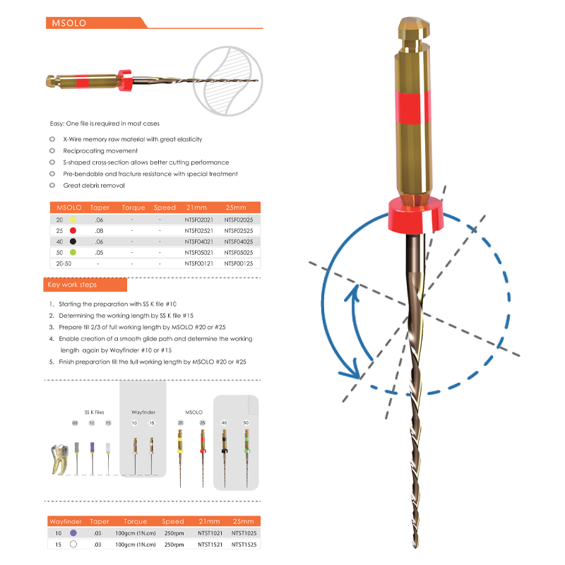 - شروع کار و آماده سازی اولیه تا 2/3 عمق کل کانال به وسیله فایل روتاری MSOLO شماره 20 یا 25 (MSOLO #20 or #25)