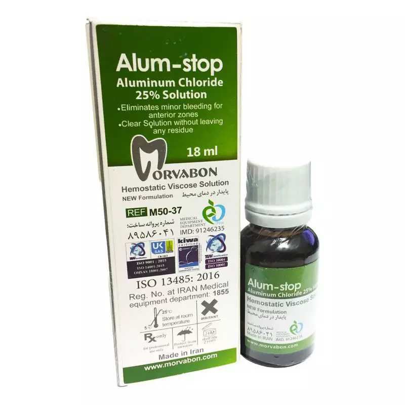این محلول به دلیل داشتن کلرید آلومینیوم که باعث انقباض لایه سطحی لثه آزاد با رسوب پروتئین های سرم و بافت می شود به جریان قطع جریان خونریزی لثه کمک می کند.