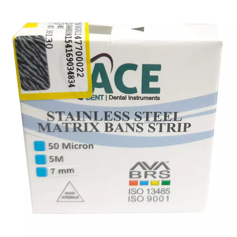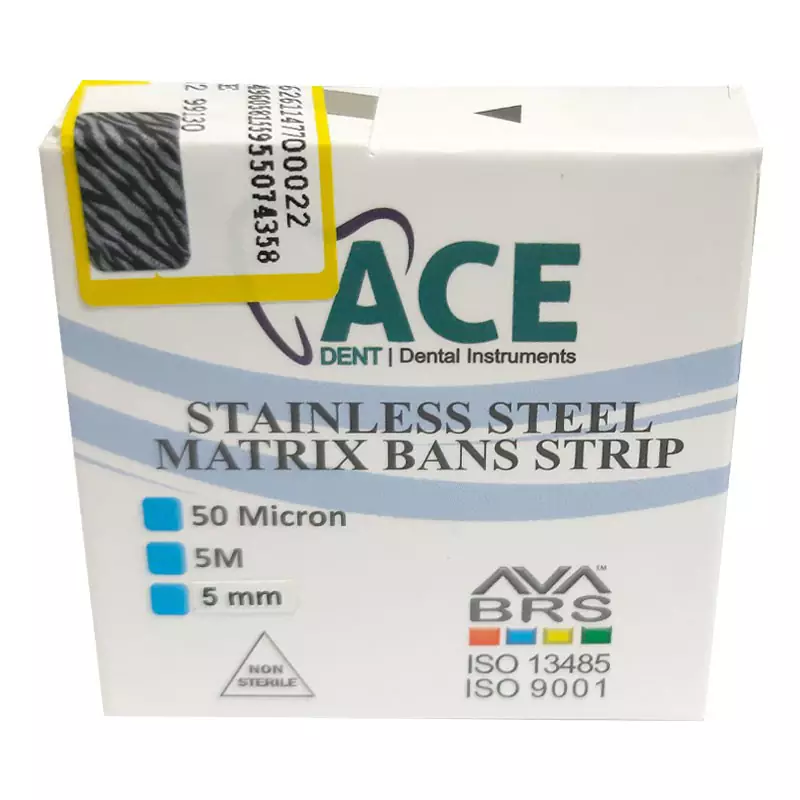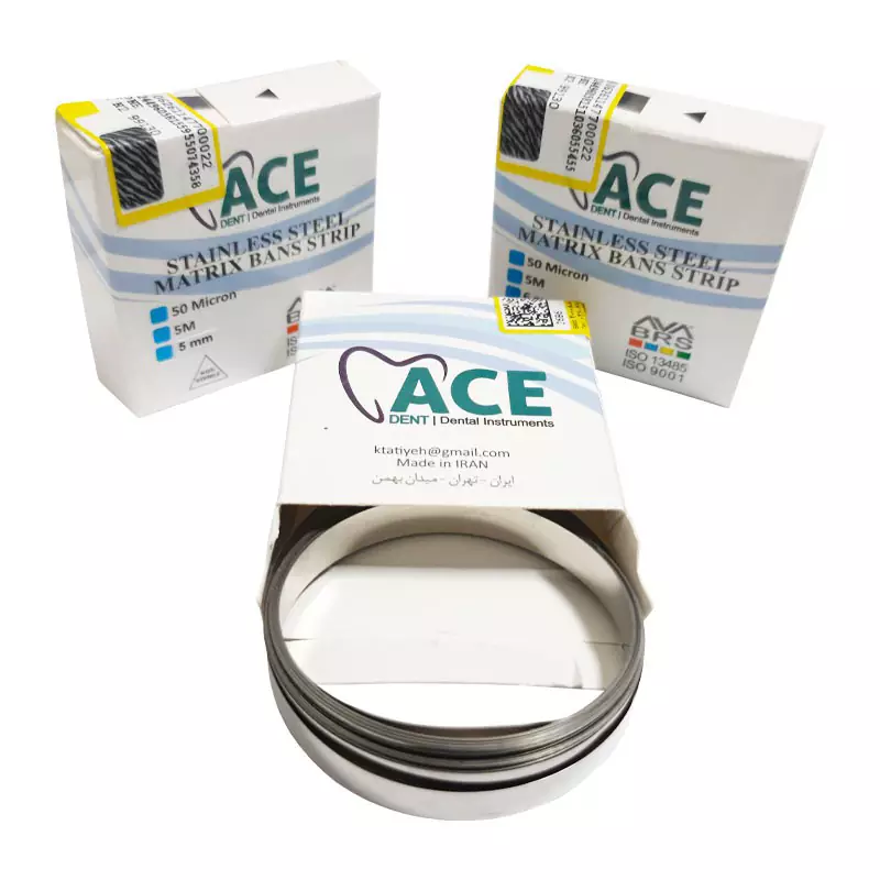 • نوار ماتریس رولی ace به صورت رولی با طول های 5 ، 6 و 7 میلی متری و عرض 5 میلی متری عرضه می گردد