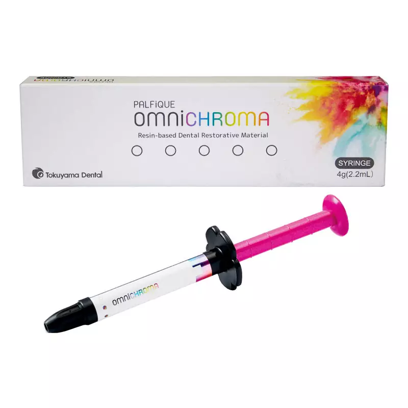 OMNICHROMA یک کامپوزیت یونیورسال، رادیو شفاف، تک رنگ و بر پایه رزین است که رنگ ساختاری تنها با خواص فیزیکی نور (پراش، شکست، تداخل، پراکندگی، و غیره) و نه با رنگدانه ها به دست می آید، روش های تطبیق سایه را حذف می کند و جلوگیری از خطاهای فردی در تطابق سایه در ترمیم های کامپوزیت را آسان تر می کند.