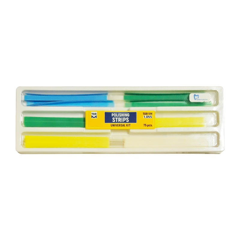 همچنین نوار استریپ کامپوزیت، وظیفه پرداخت و صاف کردن سطوح بین دندانی ترمیم شده و ساییدن مینای دندان برای کاهش عرض دندانهای قدامی را انجام می دهد.
